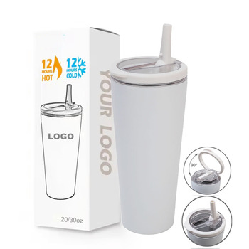 Nuevo vaso aislado de acero inoxidable de 24oz y 30oz, vaso mate portátil de Color caramelo de doble pared con pajita abatible y mango